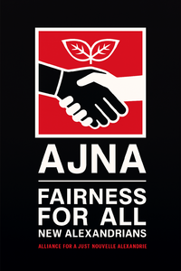 "Fairness For All New Alexandrians" (La Justicia para Todos los Nuevos Alejandrinos) |