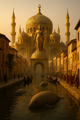 Religious architecture centers around yurts, including the elaborate Canïfaha temples, forbidden to outsiders and housing prominent religious leaders and Alps. The capital city-temple, Alpazkigz, described as "a tent city within a tent," is annually reconstructed and symbolizes spiritual renewal and communal unity. Yurt interiors document family and tribal histories in blood-infused ink, visually chronicling the community’s spiritual and historical lineage. These sacred spaces reinforce collective identity, spiritual devotion, and historical continuity.