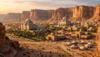 | Pelagia | Near Saltsteppes, Northern Strait | Semi-arid coastal zone, oases | BSh (Hot Steppe) | Hot summers, mild winters, moderate dryness | Sandstorms |