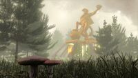 [[File: | [[File:SatyrShrine22B.jpg|alt=|left|thumb|200x200px|The Satyr King stands tall atop the Temple of the Satyr King, rising above the Wood of the Gamesmen.]].]] | ||