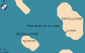 Illiyor began several thousand years ago with the settlement of the Lyrican people on the two small islands known as Estilliyor and Vestilliyor. The two islands marked the greatest westward expansion of the Lyricans, but also meant that the nearby Grand Duchy of Jaris and the Free Republic isolated them. With the collapse of the Lyrican Kingdom the islands passed into the hands of Jaris, which ruled them as a part of Shireroth until 2488 ASC, when the Republic of Antica took over the region. The Anticans ruled for over two thousand years until 4937 when the republic collapsed. After that the islands alternated between periods of anarchy and varying overlords as several minor powers fleetingly grasped for control of the area. It wasn’t until 5168 that the Jingdaoese arrived and established the Kingdom of the Six Islands. Vestilliyor became the seat of their power, and the settlement of Rollins Piek soon exerted its influence over vast territories as the Siseran armies swept over the land. Yet seemingly just as quickly the Jingdaoese departed (in 5427), lost in religious fervor. Again Illiyor relapsed into a period of apathy, and its small fishing villages resumed the day-to-day routine of rural life.