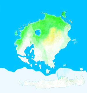 The center of the continent is dominated by the Riponian Mountains (othwerwise known as the Inner Desert), including the continent's highest peak, Mt. Jaiha (4200 m). These give way to foothills further north until eventually falling into a wide and extremely fertile plain drained by a number of rivers, along which stretch several somewhat prominent forests. Much of the southern areas of the continent and Hypernostria are icy tundra.